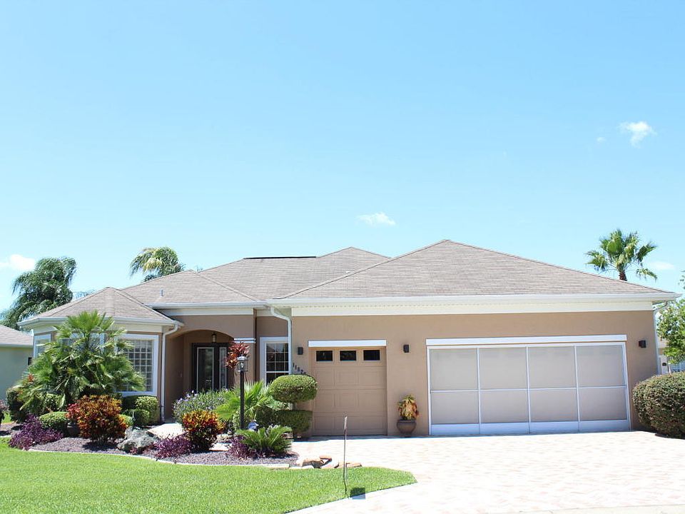 Located in Beautiful STONECREST, a 55+ Gated Golf Community with ALL the amenities ONLY 3 miles North of THE VILLAGES, FLORIDA! If you're looking for WOW, this is your house! Expanded SAN MARCO Floor plan with 3 bdrms/2ba, with expanded Family room and Oversized Lanai under AIR with SALT WATER, SOLAR HEATED POOL with WATERFALL under screen enclosure (Birdcage)! This property has many extras to include GRANITE, TILE, 2 Car Garage plus GOLF CART GARAGE, Brick Paver Drive and Walkway, SURROUND SOUND SYSTEM, well manicured LANDSCAPED yard! You MUST put this one on your list to view!
