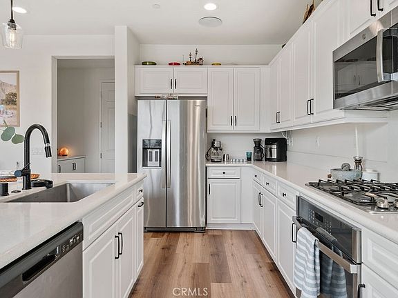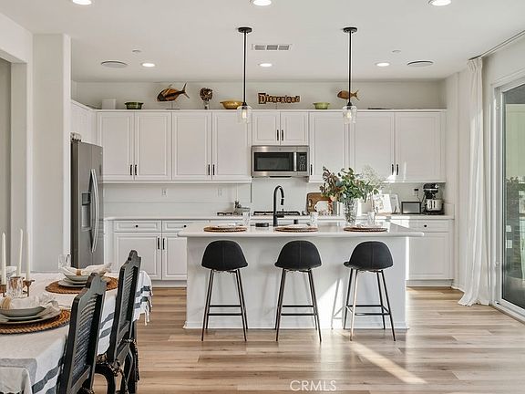 Step into a serene Craftsman-style sanctuary within the exclusive gated community of Terramor, where the perfect blend of natural elegance and modern luxury awaits. Take in the panoramic views of mountains and hills from the comfort of your home. A tranquil backyard features mature fruit trees, a pergola, garden beds, dog run, and space for outdoor dinners at sunset or to enjoy your morning coffee as you watch the sunrise just over the horizon. Upon entry enjoy an open floor plan that effortlessly links the kitchen and living area, offering captivating views just beyond the windows—an entertainer's dream. The spacious chef’s kitchen boasts quartz countertops, stainless steel appliances, walk-in pantry, and a built-in range and oven, ensuring both style and functionality. A downstairs study offers flexible work-from-home options. Other features include new luxury vinyl plank flooring and Concrete Collaborative terrazzo tiles on the main floor with 10 ft ceilings, a mudroom, and a powder room designed with Rifle Paper Company wallpaper. Immerse yourself in surround-sound perfection with in-ceiling speakers connected to two central 5.1 audio entertainment centers, one for downstairs and one in the upstairs loft. Upstairs, three bedrooms, including a primary suite, all feature walk-in closets. The perfect space for a growing family. A laundry room and versatile loft provide extra functionality and space to enhance your living experience. The two-car garage is equipped with a 220v outlet, ready for a car charger. This Craftsman masterpiece transcends the definition of home: it's a lifestyle. Embrace refined living in a gated planned community that welcomes you with a Zinfandel vineyard, the Veranda clubhouse, a community pool, garden, tot lots, open spaces, dog parks, a basketball court, and over five miles of trails. Conveniently located near the 15 freeway, make this residence your sanctuary and indulge in the epitome of luxury living.
