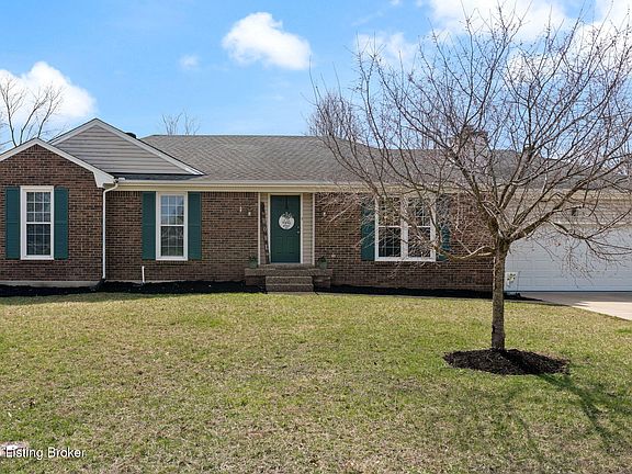 Hard to find move- in ready ranch in Goshen Hills with newer plank flooring and carpet. This 3 bedroom 2 bath home situated near the North Oldham County school campus offers one floor living with a finished basement and spacious fenced backyard. Step inside the light and airy living area with brick fireplace (sellers have never used) The generously sized primary suite with neutral paint can accommodate a king sized bed and there are two other good sized bedrooms that share a full bath with large closets as well. The finished basement can be a playroom or family room in addition to room for a home office or workout space. As a bonus a NEW furnace and AC was installed in 2024 .
