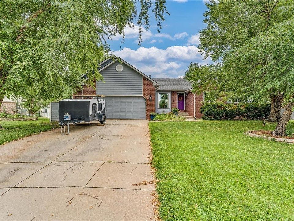 This desirable Goddard School District Home is tucked away on a quiet cut-de-sac with a 1/2 acre lot waiting for its new owner. Walking up to the front door you will appreciate the mature landscaping and great curb appeal. Upon entering the home you will be greeted with loads of natural light and high ceilings. The living room features a 2 way fireplace which is shared with the kitchen. The kitchen features granite counter tops and plenty of counter space for all you cooking and baking needs. All kitchen appliances will remain with the home. The formal dining room is perfect for holiday gatherings. The home features 4 bedrooms and 3.5 bathrooms. Downstairs you will have a large family room with a fireplace and a wet bar. The back yard has a large deck and the possibilities are endless with all the space! The roof and carpet are newer! Come see this home today!