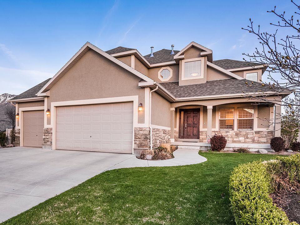 This home sits at the very end of the culde-sac in one of the best neighborhoods in Highland. Enjoy the waterfall in your immaculate, fully fenced, private backyard that comes with a trampoline and play-set for the kids. The mountain views are amazing and the natural light that shines through the plantation shutters will make you enjoy this home even more. Upgraded LED lighting throughout the home, Walnut wood floors, double ovens, two furnaces for hot water all the time, two AC units so you're always cool in the hot summers, in-wall surround sound speakers in the basement, granite counter tops, Nest thermostats, central vac with outlets on every level, water softener, and two brand new 50 gallon water heaters.