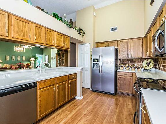 Gorgeous three bedroom, two bath, two car garage home in gated community. Third bedroom or currently den has large walk-in closet. New wood flooring, new roof (summer 2013), new exterior paint, new a/c . New double tank salt system softener. Hurricane shutters. Large, glassed enclosed Florida room overlooks beautiful fresh water canal. Home absolutely will please every buyer. Golf Course community with gorgeous clubhouse with numerous activities, tennis courts and more.