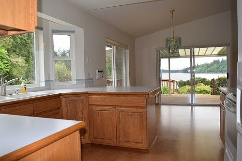 Absolutely stunning views of Hammersley Inlet. Collecting oysters and clams on your 100+/-ft of beach front is one of the wonderful amenities . Concrete formed stairs from the beach lead to the unique wooden bridge from front deck to grassy lawn. Featuring 2 bd,2 bth, open kitchen, dining area with views from all windows. Large living room with wood stove and bay window. Detached 2 car garage with separate living area with a large room and private bathroom. RV parking w/hook up and newer roof.