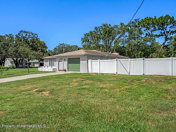 This meticulously maintained two-bedroom, two-bathroom home with a one car garage in Spring Hill offers an inviting and spacious open layout, perfect for comfortable living. The home has a fully repaired sinkhole with all documentation and the home is is fully insurable. Gorgeous ceramic tile flooring runs throughout the home, enhancing its elegance. The formal living room and dining room feature sliding glass doors that seamlessly connect to a huge open outdoor patio, ideal for entertaining, dining outdoors, or enjoying the serene outdoor space. The property boasts a fenced backyard, which includes a large shed that provides ample storage space. A lovely family room features a wood-burning fireplace and flows effortlessly into the kitchen, equipped with two generous pantries for convenience. Additional sliding glass doors lead out to the outdoors, providing a bright and airy atmosphere. Both bathrooms have been beautifully remodeled; the guest bathroom includes a tub-shower combo with gorgeous new tiles, a modern vanity, new mirror, new toilet and new flooring. The second bathroom has a gorgeous step-in shower with new tiles, new toilet, new vanity, new mirror, and new flooring. ensuring a cohesive and fresh look throughout the home. The master bedroom is spacious, complete with a fan light for added comfort, while the guest bedroom also offers generous space and a fan light. Set on a sizable .30-acre lot. The roof will be replaced before closing with durable 30-year dimensional shingles, allowing the buyer to choose their preferred shingle color. The home's exterior has been freshly painted, and the interior has also received a fresh coat of paint, resulting in a move-in-ready space that feels brand new. Don't miss out on the opportunity to make it yours. Priced to sell quickly for only 249,900. Schedule a private tour today and envision your future in this beautiful home—where comfort meets elegance and outdoor relaxation and enjoyment awaits!
