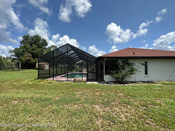 Welcome to this charming and beautifully maintained home in the heart of Spring Hill, Florida. This inviting residence offers the perfect blend of comfort and convenience with its three spacious bedrooms and two bathrooms and oversized 2 car garage. The living area bathes in natural light and flows seamlessly into a charming kitchen with stainless steel appliances. Step outside to the private backyard oasis, perfect for entertaining or enjoying tranquil moments by the pool featuring a brand new poolcage! Pet lovers dream with fully fenced in backyard and bonus fenced in dog area! Situated in a friendly neighborhood with easy access to schools, parks, and shopping centers, this home presents an incredible opportunity for anyone seeking the ideal Florida lifestyle. Home includes washer and dryer and even the riding lawn mower. all new dual pane windows and sliders throughout, bedroom # 3 has an upgraded impact resistant dual pane window making for a great storm safety room!!