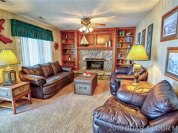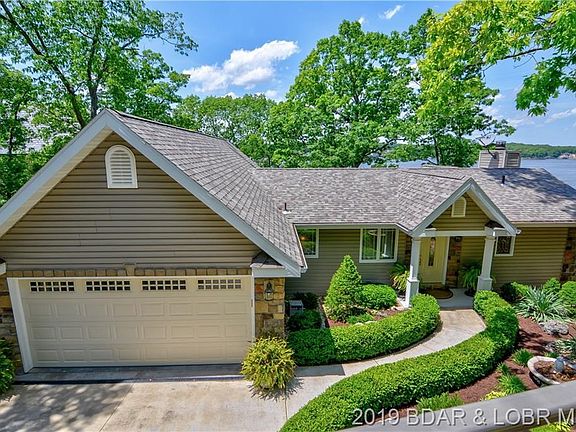 Location, Location, Location-right in the Heart of Osage Beach, this upscale home is nestled in the trees on a beautifully landscaped lot. Meticulously maintained home with a wonderful addition, great parking (7+) and extensive landscaping. 4 bedrooms (2 of which are master suites), 3 1/2 baths, a large living room (with vaulted ceilings and a floor to ceiling palladium window system), a super comfortable lower level family room with beautiful built ins and a true concrete safe room. These are some of the best views you will find at the lake and this home is set up with tons of windows and great decking to allow you to enjoy the view in every direction! As you make the beautiful walk to the 2 well dock be sure to enjoy the "martini deck" on the waters edge. With city water, sewer, and street maintenance, an abundance of storage space including a 2 car garage and a 8'X20' detached workshop on top of this view and location, this home can't be beat! Newer roof, heat pump, & water heater.