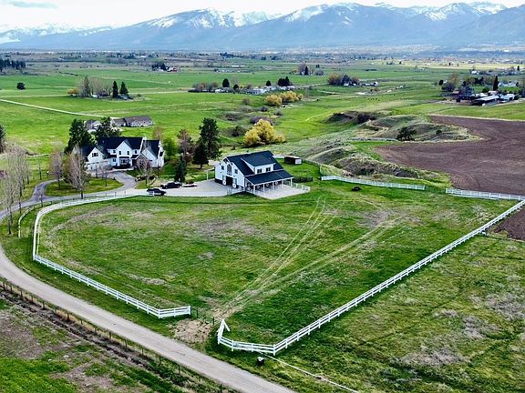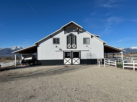 Indulge in elevated country living with this exceptional 3-bedroom, 2-bath modern-rustic barndominium, perfectly positioned to capture sweeping, unobstructed views of the Bitterroot Mountains. Designed with refined finishes and architectural warmth, the home offers an elegant open-concept layout filled with natural light and timeless craftsmanship throughout. Set in a serene and private country setting, the property provides a rare opportunity for equestrian living, featuring optional pasture, stall, heated water trough, and attached turnouts (available for an additional $750/month).