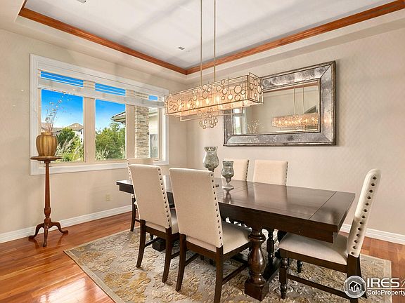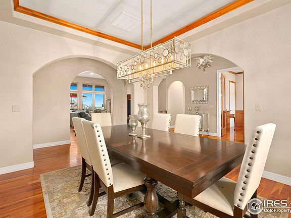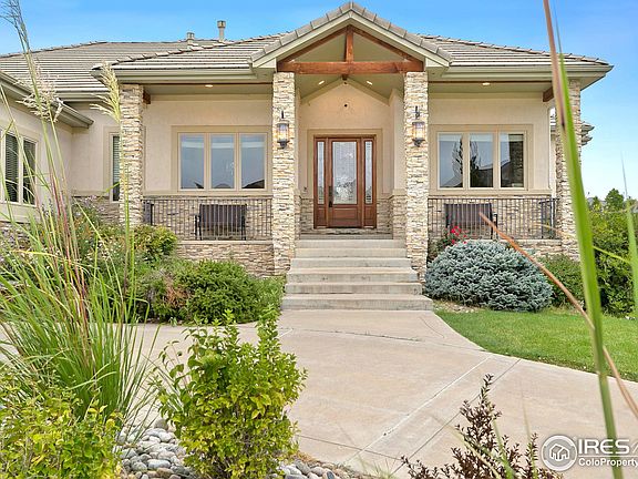 Welcome to this beautifully appointed custom stucco & stone accented ranch home. Sunny formal din rm w/tray ceiling, sep office w/1/2 ba. Liv rm w/gas fp, surround sound, wd flrs. Chefs Kitchen w/spacious island w/brkfst bar, granite cnters, tile backsplash, under cab lights, gas Viking stove w/double oven & walk-in pantry. Eat-in dining w/easy access to covered trex deck w/outdoor grill/kitchen station. Primary suite w/5-piece ba w/jetted tub, steam shower, walk-in closet & laundry room access. Also on main floor there is a 2nd large bdrm suite w/private full bath & walk-in closet. Walk-out basement finished & spacious w/media room, wet bar, walk-in pantry, recreation room, 2 additional bedrooms, full bath & 29x13 storage area. Radon mitigated. 4 car (1,125 sf) heated garage w/epoxy floors & equipped with a 240V EV Charger, large driveway, lush perennial landscaping, large yard, big patio & spiral stairs up to the deck. Easy access to schools, shopping, golf course, and I-25.