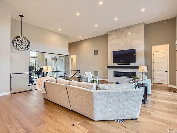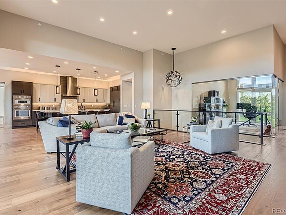 Once inside, floor to ceiling glass separates the main floor office from the open concept living space. The spacious chef’s kitchen features top of the line appliances, custom cabinetry, a walk-in pantry, and gorgeous stone. Large windows fill the space with an abundance of natural light and breathtaking views in every room. The home features two main floor bedrooms with en suite bathrooms. The Primary suite sits off the main living space and has a spacious Spa-like 5-piece bathroom with a large walk-in closet. A wide staircase with a custom glass railing leads to the basement with high ceilings. Downstairs you'll find an additional two guest bedrooms and an expansive open living space perfect for any use. The list of features includes designer lighting, ample storage, window treatments, a water softener system, home humidifier, and a finished garage. The Village at Castle Pines includes amazing resort-like amenities including three pools, a fitness center, walking trails, 24/7 gated security, in home emergency call buttons, vacation home checks, tennis/pickleball courts, playgrounds, community events, and much more.