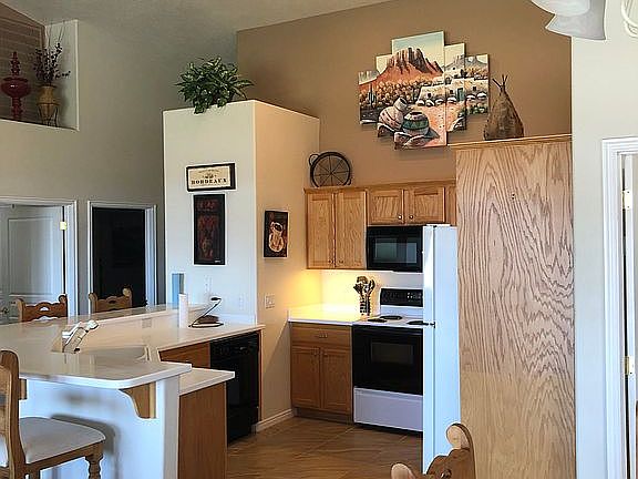 Situated on the 15th tee of the Canyons Golf Course, this end unit townhouse sits at the perfect spot to view firework displays, skydivers, and beautiful Mesquite sunsets. This home offers 2 bedrooms and 2 bathrooms, which can be used as dual master suites or however you desire. Inside are vaulted ceilings, new ceramic tile throughout (tile in main areas, including kitchen and one master bathroom), and an open floor plan with easy access to kitchen and laundry room. Current HOA fees include weekly landscape maintenance of both the front and back yard, weekly sanitation pick up, basic cable, and access to the Mesquite Vista’s Sports Complex that include pool, spa, fitness center, basketball, tennis, and pickleball courts. Very few townhomes with these amenities and spectacular views come on the market. Don’t miss your chance to own this place!