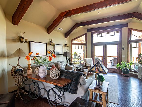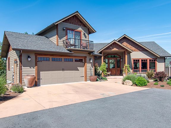 This gorgeous custom built home is located in the highly desirable location of NW Grants Pass. Upon entering the elegant and over sized front door you are greeted with a cozy great room and views from every window. Overlooking town from the East you will be treated to beautiful sunrises while enjoying your morning on the magnificent extended deck. In the evening, while relaxing on the terrace facing west, the sunsets are spectacular. Thoughtfully designed with a main floor master, spacious master bathroom with heated floors you will also find a custom kitchen w/ high end appliances, farm sink, pantry w/ butcher block for all your kitchen projects and a formal dining room with a double sided gas fireplace. Upstairs are 2 well appointed bedrooms and another full bathroom. This home has it all and more than you can even imagine. It is a must see to truly understand how fascinating it is.
