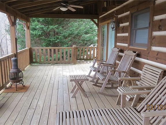 Comfortable and cozy log home on very private 2.79 acres. Sit on your covered porch and enjoy the tremendous mountain views. Main floor master bedroom and bath. Upstairs loft bedroom and full bath. Sit in your jacuzzi tub and enjoy the mountain views. Beautiful stone fireplace. Wood floors throughout. Basement has one large room that houses bunk beds and 1 double bed and opens to covered patio with porch swing.