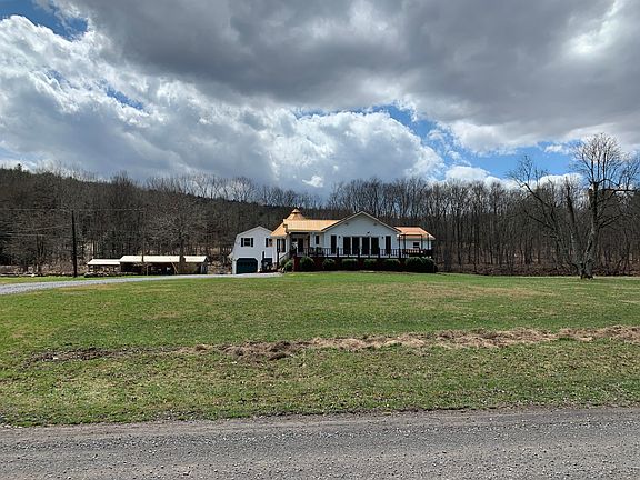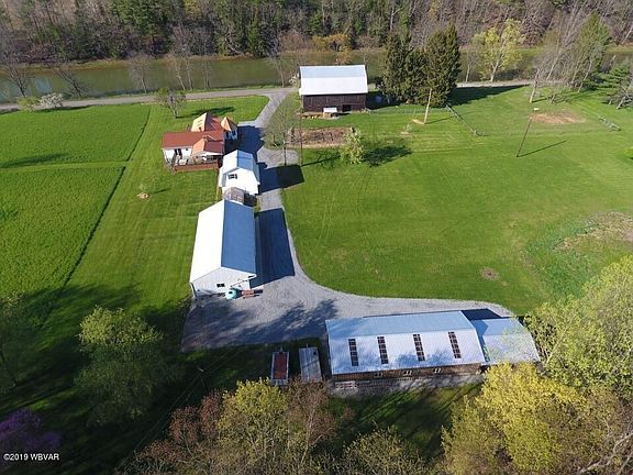 Very well kept private waterfront home and scenic property on 70.45 acres. Property borders the Clearfield Creek offering terrific fishing, swimming, canoe and kayaking opportunities. Large barn, large heated workshop, large equipment barn, greenhouse and picnic pavilion. At the rear of the barn, there's approximately 1 acre fenced in that's electrified. Abundant wildlife on this property, with the large open fields and wooded areas. Wonderful views from the front deck of the creek and the wildlife that visit the property daily. Relax on the rear deck or entertain your friends and family, while watching the wildlife and enjoying the hot tub. Large living room with cathedral ceiling and hardwood floors, mountain stone fireplace in the family room, large basement and FREE NATURAL GAS!