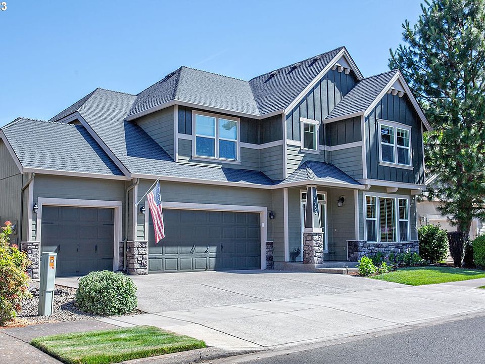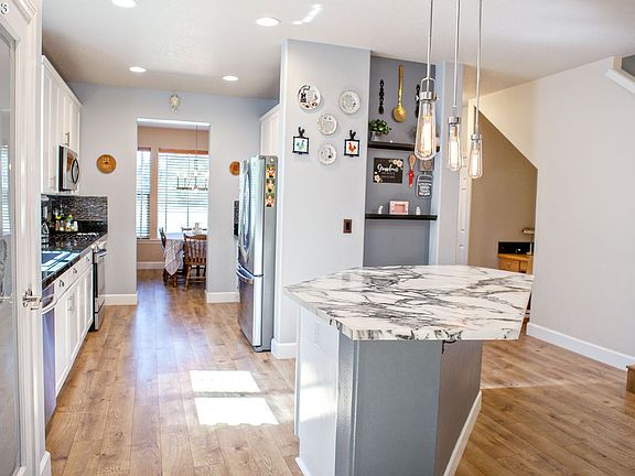 Sitting across from Candlelight Park, this unique 5 bedroom home features 3000+ sq ft, plenty of room for everyone and flexible spaces. The kitchen boasts granite counters, SS appliances, pantry, and island/bar that overlooks the adjoining living room. Main level suite includes WI closets, dual showerheads, double vanity, & soaking tub. Second ensuite bedroom, along with additional bedrooms are found upstairs. Fully fenced backyard w/ covered patio, UG sprinklers,& tool shed. Oversized 3 car garage tops it all off.
