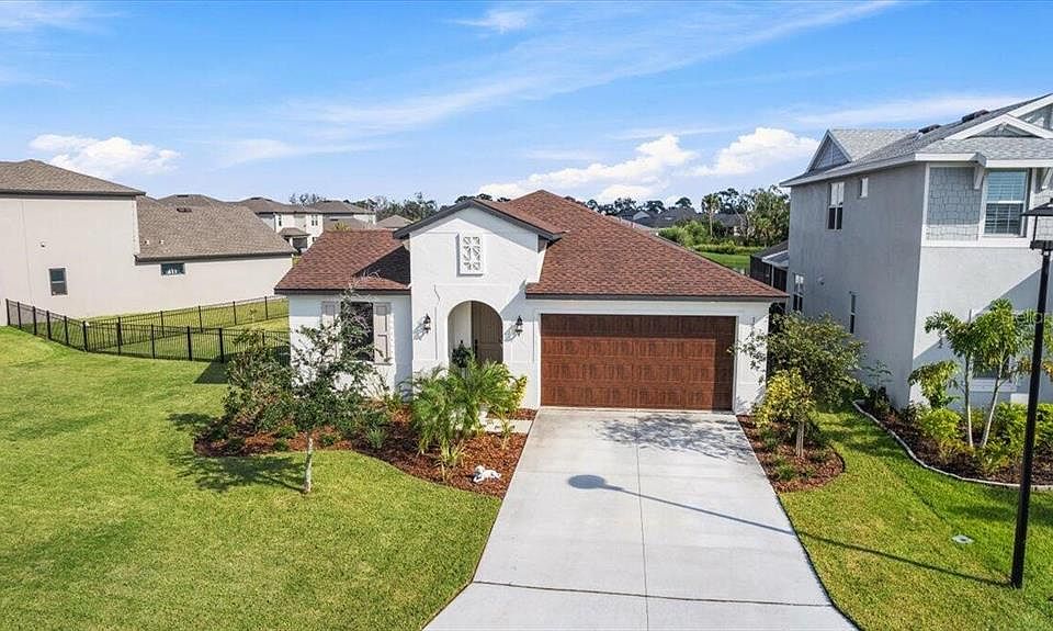 Welcome to a home that is truly in a class of its own. Situated in the highly sought-after Isles at BayView, this stunning residence transcends standard new construction, offering an unmatched blend of luxury, functionality, and tranquility. Step inside a one-story, open-concept masterpiece. The home’s heart is a dramatic living area where a great room, dining space, and gourmet kitchen are bathed in natural light and crowned by breathtaking 14-foot vaulted ceilings. The kitchen is a chef's dream, featuring custom cabinetry, solid quartz countertops, and a magnificent waterfall island. A premier Whirlpool appliance package ensures top-tier performance. This home is thoughtfully laid out with a split floor plan for maximum privacy. The luxurious primary suite is a true retreat, located in the rear of the home, while three additional bedrooms provide ample space for family and guests. Beyond the impeccable interior, this property offers incredible outdoor living. Enjoy a serene water view from your covered lanai. The backyard is already a private paradise, fully enclosed by a new fence. For year-round spirit, the home is equipped with permanent, easy-to-use house lights. An efficient garage storage system and easy-to-install storm shutters are also included. This property is an ENERGY STAR certified home, designed for superior energy efficiency and comfort. Live the resort-style life you've always dreamed of. Located in the heart of Parrish, Isles at BayView offers easy access to I-75 and I-275, placing you in a prime location between Tampa, St. Petersburg, and Sarasota. This turnkey home stands out from the rest. Flood Zone X.