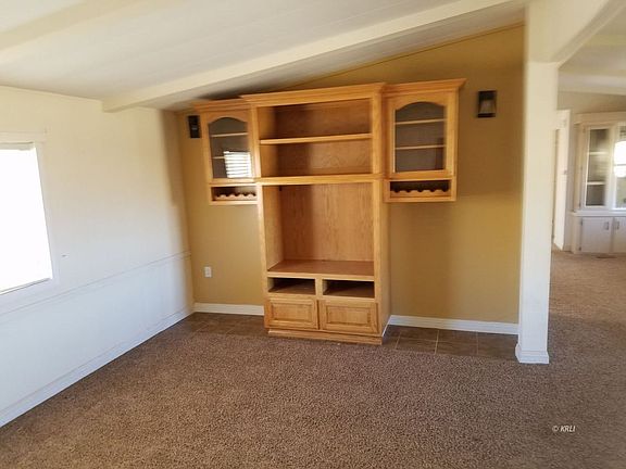 Get ready to stretch out & enjoy the peace & quite of the suburban lifestyle. 3 bedroom, 1.75 bath on permanent foundation. Features open floor plan, great kitchen with tile floors, lots of counter & cabinet space. Huge living room/dining room combo with built in Hutch & Entertainment center. Master bedroom has dual closets & vaulted ceiling. Super sized front deck to enjoy the views. Great opportunity for a small ranch & ready for your personal touches & design. The 2.5 acres are all usable & animal friendly. Only a few miles from lake access or Kern River.
