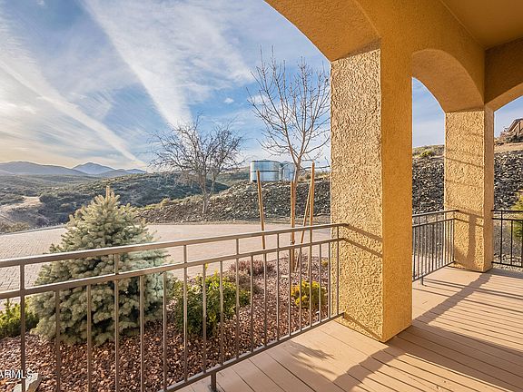 Beautiful property with mountain views in all directions! Great location 10 min from Prescott Valley, 20 min from Prescott (Costco) and 60 min from North Phoenix. Makes this a great weekend getaway. This 3 bed, 3 bath home includes two Master Suites with jetted tubs, walk in showers, and patio access. Large open floor plan with travertine tile throughout and a gas fireplace in the family room for those cold winter nights. The spacious kitchen includes many custom touches including upgraded appliances, granite countertops, an island, large walk-in pantry, eat-in dining area and custom cabinetry. This property has lots of custom landscaping, a large paver driveway, lots of hardscaping and plants with an irrigation system. There is a detached oversized 3 car garage with room for all your toys The garage is also equipped with an EV plug. You can drive right out of your driveway and ride into the mountains. Finally, to top things off, there are views of the mountains visible from the wrap-around deck of the home.
