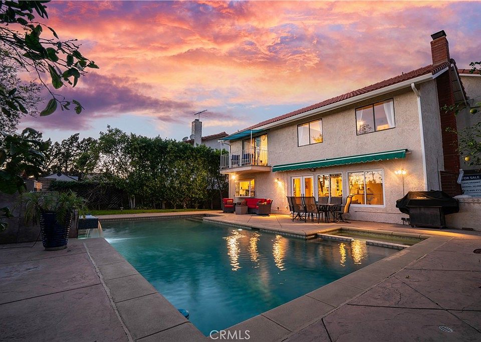 Searching for a Porter Ranch pool home with flexible living space and scenic rooftop views? This well-maintained Porter Ranch home for sale offers a functional layout, recent key updates, and the lifestyle that makes living in Porter Ranch so appealing. The home features 4 bedrooms plus a large bonus/game room, providing versatility for today’s needs. A dramatic entry with vaulted ceilings opens to bright living areas filled with natural light, complemented by hardwood flooring that adds warmth and character throughout the main spaces. The kitchen and family room flow together comfortably, creating a welcoming hub for daily living and casual entertaining. Sliding doors lead to the backyard, where you’ll find a private pool and spa, surrounded by mature landscaping—an ideal setting for relaxing, hosting friends, or enjoying Southern California evenings at home.