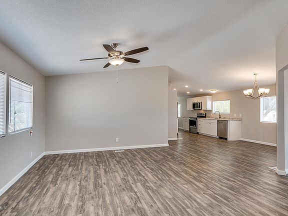 This beautiful home has been impeccably upgraded right in the heart of Thunderbird Farms with paved roads, private water company and NO HOA! The home features 3 bedrooms, 2 bathrooms, extra den, vaulted ceilings, new paint, new floors throughout all while sitting on 3.3 acres of private fenced land!The kitchen features stainless steel appliances, white cabinets & eat in breakfast nook! The master suite features a master walk in closet and en-suite with dual vanities. The separate storage shed is perfect for anything and don't forget the spectacular mountain views!Do not miss out on your opportunity to own this stunning acreage! Schedule your showing today!