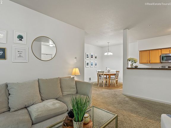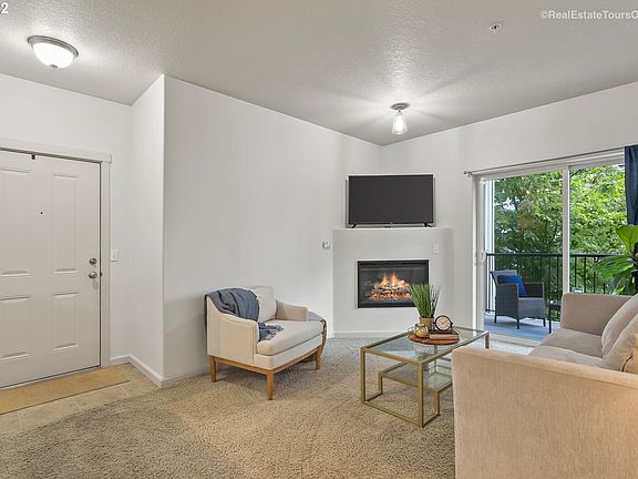 Darling Timberland condo. Features open floor plan, electric fireplace, large dining area, freshly painted walls. Kitchen has granite eat bar and SS appliances. Slider to lovely patio/ balcony with storage. Primary suite has large soaking bathtub and walk in closet. Laundry room with washer and dryer. All appliances are included including portable AC unit. Detached single car garage. Multiple parks & grassy commons. Minutes to Sunset MAX, HWYs 26 & 217. 2.5 miles to NIKE & 8 miles to Intel.