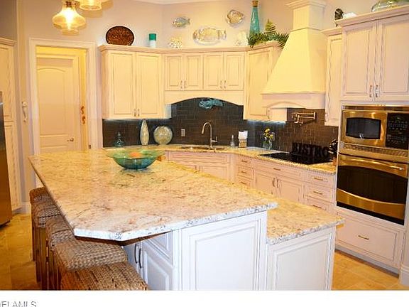 Custom Built Elegance!! 4 Bed/3.5 Bath Pool Home located in Cape Royal, Cape Coral's only gated golf course community. Meticulously built and maintained with NO detail overlooked, this home features the finest finishes & upgrades including Granite throughout, Travertine Floors, Wood Cabinets, 8 ft. Wood Doors, Coffered Ceilings w/LED Lighting, Crown Moldings galore, Power Shades, Magnetic Door Stoppers, Impact Resistant Windows/Doors, and a Gourmet Stainless Kitchen. A fabulous Master Suite offers an Enormous Walk-In Closet with wood shelving & French Door access. The 10 ft. Great Room Sliders open to a HUGE living space with Summer Kitchen with Gas Fireplace and 55 in. Flat Screen TV ideal for entertaining. Enjoy a Remote Controlled Free Form Salt Water Pool & Spa with sheer descent waterfalls, Electric Heat and LED lighting for evenings. External Features include upgraded Landscaping, HUGE 865 sqft 3-car Garage, Paver Drive, Tiled Roof and Long Golf Course and Lake Views. Front bedroom can be easily used as a large Office or Den with separate Bath. HOA fees are very low for gated piece of mind and Golf is Not Required.