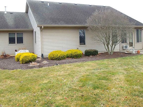 A WONDERFUL PLACE TO RETIRE IN THIS 1286 SQ FT RANCH WITH 2 BEDROOMS, 2 FULL BATHS PLUS 3 SEASON ROOM THAT OVERLOOKS WOODS. 3 YEARS AGO, FRESHLY PAINTED WITH NEW CARPET IN LIVING ROOM. 24 X 21 2 CAR GARAGE, WITH GARAGE DOOR OPENER . THE $150 ASSOCIATION FEES COVER WATER AND SEWER, TRASH PICK UP, LAWN CARE, MULCHING, TRIMMING, SNOW REMOVAL. THE CAMPUS FEATURES POND, WALKING PATHS, GAZEBOS AND FAMILY GATHER CENTER. LUNCHES CAN BE PURCHASED AND DELIVERED TO HOME FOR $7.