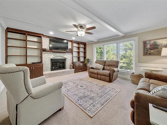 - Features: Built-in Features, Carpet, Ceiling Fan(s), Fireplace