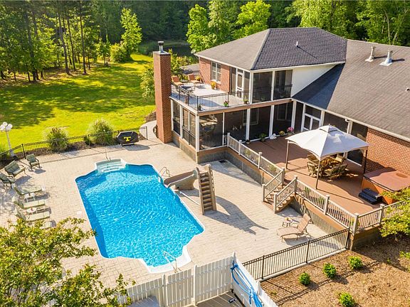 Let home become your daily escape in this gated and PRIVATE, 10 acre estate. This 4 bedroom virtually maintenance free brick home is full of amenities to include custom cherry hardwood floors, custom cabinets, exotic granite throughout the home, multiple living areas, an upstairs kitchenette, & large walk out attic storage. Perfect for those who love entertaining, or those who just love being outside, this home has many outdoor living spaces and features two screened porches, solar assisted heated pool with slide and its own wood burning fireplace, stamped concrete patio, all aluminum railings and pressed decking, and your own outdoor 100 yard shooting range. With a grand dining room large enough to accommodate a 12 person table, the