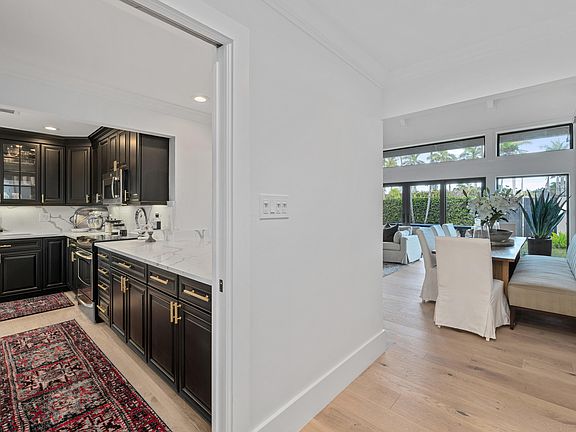 Bright and airy remodeled 2 bedroom, 2 bath Patio Lodges within Palm Beach Polo & Country Club. A large end unit beautifully renovated from top to bottom. Vaulted post-and-beam ceilings, wood flooring, exposed whitewash brick, and natural light spread throughout the home. New impact windows and doors lead to a private fenced backyard perfect for a pool. Double sided fireplace flows into the master bedroom with luxuriously renovated en-suite bathroom. The kitchen features custom cabinets, quartz countertops, breakfast bar and new stainless steel appliances. Secondary oversized bedroom suite, walk in closet and renovated bathroom are move in ready.