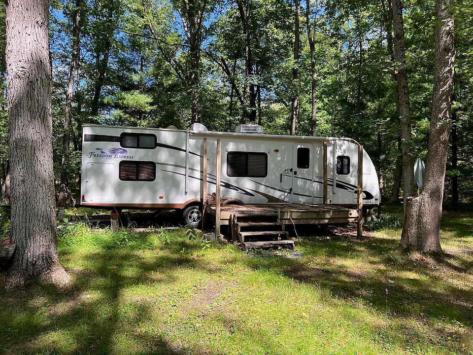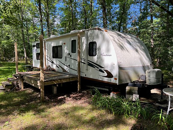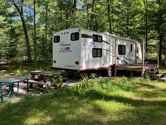 Nicely wooded 10 acre parcel just south of Big Star Lake in Southern Lake County. You have access to Bayak Beach on Big Star Lake just 1 mile away. There is a 2011 - 33' Coachman Freedom Express travel trailer included that is hooked up the the existing well and septic. No power at this time but an old pole is there that could be replaced and hooked up with a permit from the county. There is also a nice shed. Perfect park like setting. Check with Lake Township zoning on what you want to do with the property. 2023 Assoc Dues is $45.