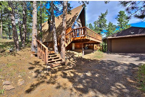 Two acres of fragrant pine forest are calling you, just 25 minutes from Boulder or Golden in lovely Coal Creek Canyon. This charming A-frame could be your entree into the mountain-living lifestyle at a steal. Central air and a natural-gas furnace provide comfort year-round. Enjoy a heated 2-car garage, fast internet, washer and dryer, and 2,000-gallon cistern for household water. The plot itself is fire mitigated, including a 4,000-gallon cistern for fire protection, and has room to expand.