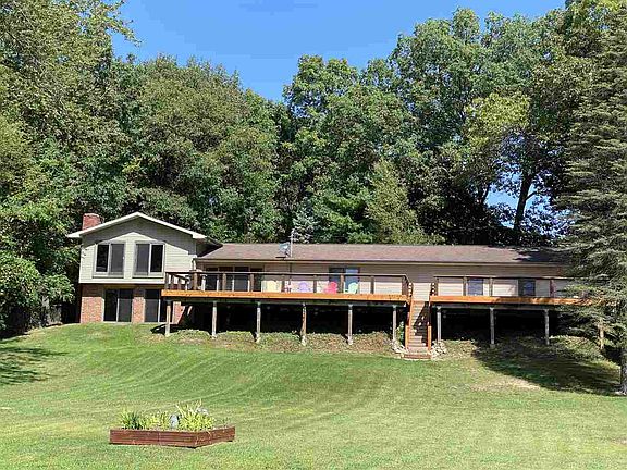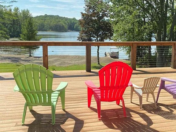 Private, Gorgeous Lakefront! Home has so many custom features: high end appliances, granite counters, Cedar closets,central air,new decking,marble step treads w/ambient lighting, plug in generator ready. If that isn't enough, lower full bath offers all natural stonework & designed to make the whole room a steam room! This home has been lovingly expanded, remodeled with attention to every detail. Former garage was completely finished adding 2 large bedrooms, half bath & lovely foyer with door-wall out to deck & entry from brand new 3 car attached garage! Custom woodwork throughout the home offers a fresh-modern look while adding light & warmth. The open floor plan makes your home a great place for gatherings & provides a wonderful kitchen sure to please! Lower level walks out to gentle slope to waterfront! Easy launching for you pontoon just back down the right side of your beach! With 4 beds & 2.5 baths, company is no problem! Welcome to the Lake!