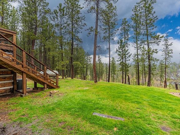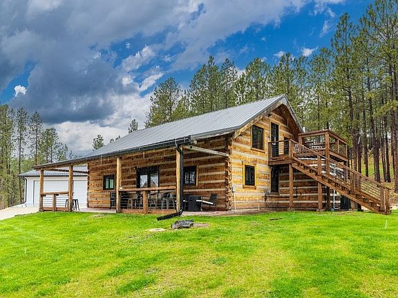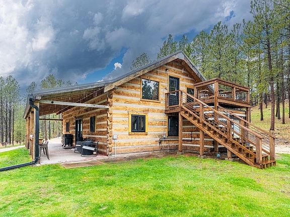 Black Hills Hidden Treasure! This unique and cozy log home is nestled in the heart of the beautiful Black Hills, set on a perfect 5+ acre wooded lot adjoining USFS lands. Enjoy the rare and breathtaking view of the Crazy Horse Memorial from the loft deck. This serene retreat is teeming with wildlife. The owners have meticulously updated this 2-bedroom, 1-bathroom home from top to bottom, including new appliances, new central air, some windows, furnace, on-demand water heater, fresh paint, and more. They have also converted the carport into a convenient shed with kennels for their dogs. Additionally, there is a brand new 30x50 Lester metal building with a concrete floor and apron. Located on some of the best UTV riding roads in the Black Hills, this property is also near the charming city of Custer. Custer offers a newer hospital affiliated with the Monument Health System, a K-12 school, the county seat, an active arts council, and numerous great restaurants and shops. Come take a look!