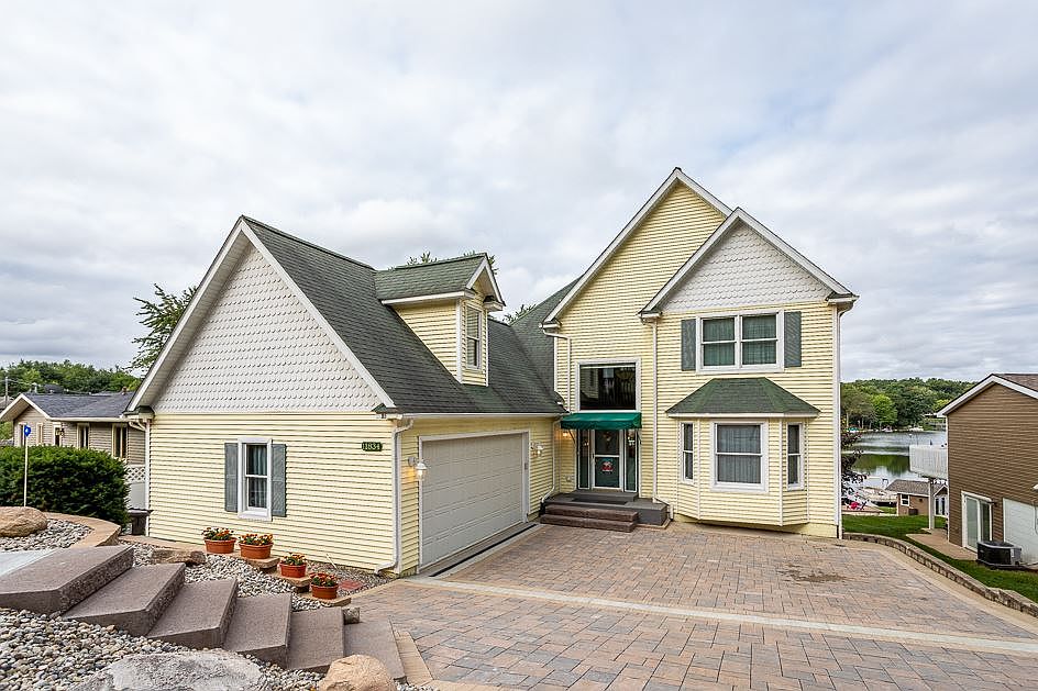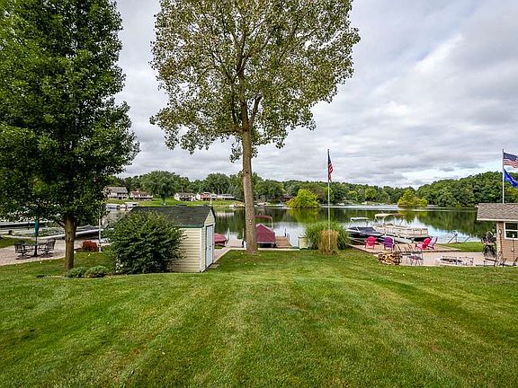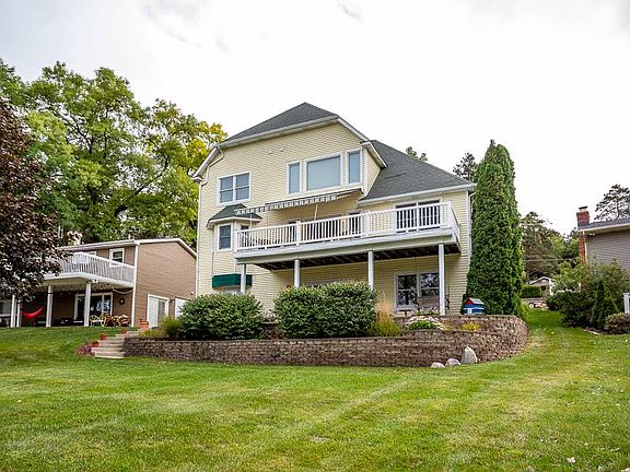 Stellar Lake Front Living on Lake Leann! Private all sports 400+ Lake. Gentle slope to water, year round home with cathedral ceilings overlooking the lake. Expansive kitchen with eat-in breakfast island and formal dining opening to the living room. Main floor master with en-suite, walk-in closet and spacious bath with lake views. Second level features two bedrooms with Jack-n Jill bath with catwalk. Finished walkout lower level ideal for guests. Featuring full kitchen, bath , living room with fireplace, 4th bedroom and a 5th nonconforming bedroom. Lakeside patio and main floor deck with retractable awning. Plenty of room and parking.