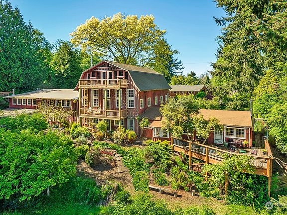 Vintage windowpanes frame panoramic sunrise views of Mt. Rainier, Puget Sound, eagles soaring & lush gardens from the iconic Betty MacDonald Farm. Host to enumerable guests from all over the world who have experienced its nature, historical interest & tranquility, the Farm is ready for the next generation to create an idyllic Vashon experience. The massive barns are transformed into spaces that restore the soul & ignite creativity. So many possibilities from this popular getaway destination...Writer's & Artist's Retreats, Farm to Table, Agri-Ecotourism Workshops & more! Two parcels/2 water shares w/4.46 acres & fenced orchard. The Main barn has 2,492 +/- finished sq. ft. w/two living areas plus another in the Lumber Barn. Floor plans avail.