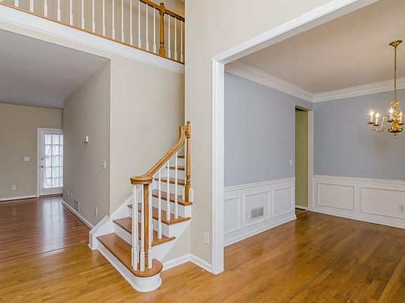 Spacious brick front home in desirable Johns Creek. The inviting entrance foyer with polished hardwood floors is bright and cheerful. The separate formal dining room is generous in size. The private den or office space fills with natural light. The cozy fireplace in the family room with views to the kitchen make this a great space for gatherings. Awesome rear deck and finished basement make this home a must see!