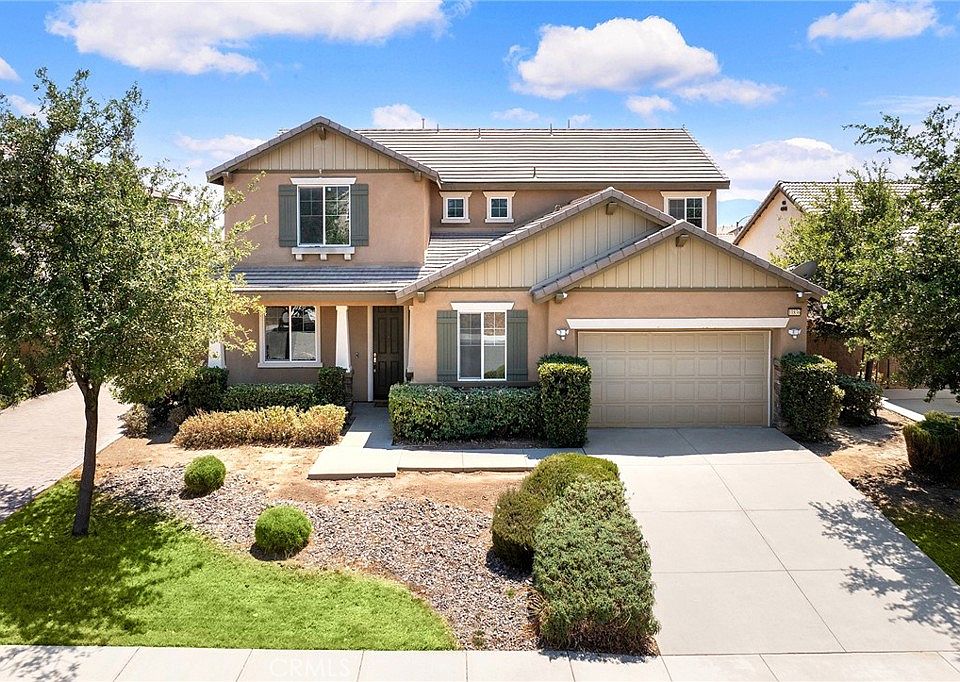 NEW FLOOR, NEW PAINTING. The former Lennar model home was built in 2017, located in the beautiful Harvest Villages in Jurupa Valley surrounded by mountains. The property offers 5 spacious bedrooms, 3 bathrooms. As you enter the long and inviting foyer you will pass by the downstairs bedroom and bathroom and the office room across from. Continuing through the foyer is the formal dining room, kitchen and the living room with abundant natural light. The loft on the second floor offers additional living space to use as you desire. The primary suite is oversized and feels like your own personal retreat. The primary bathroom is accented by dual sinks as well as a large soaking tub and separate shower. The primary walk-in closet is nearly as large as another bedroom with plenty of room for clothing and additional storage. The upstairs laundry room has ample space with built-in base and overhead cabinetry. Convenient access to the 15, 60 and 91 freeways. It will turn into a gem after some cosmetic upgrades.