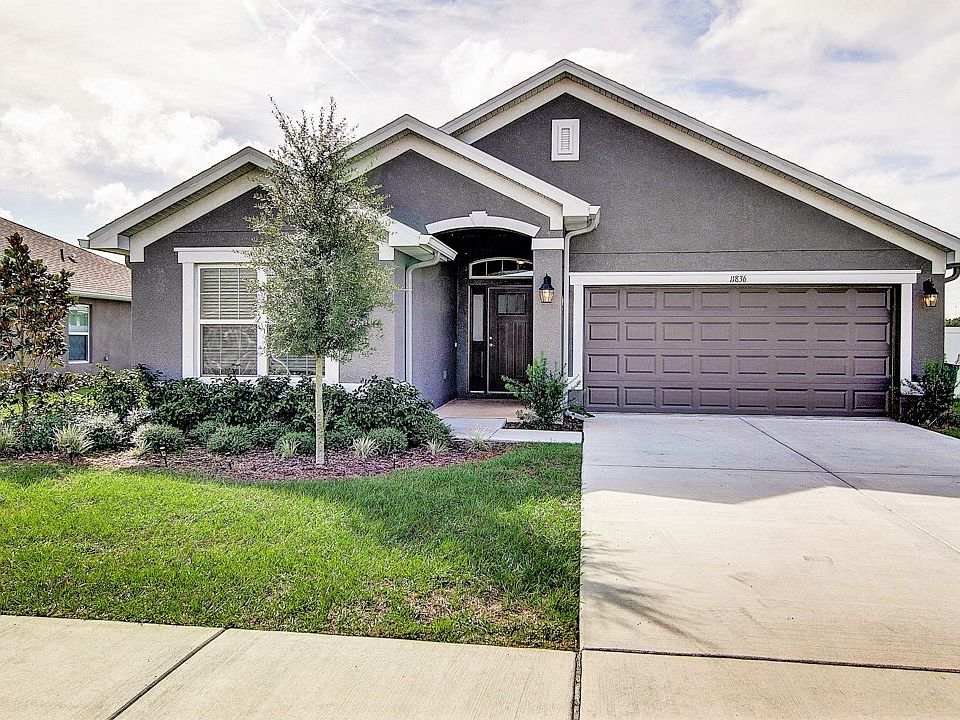 BACK ON MARKET, BUYER FINANCING FELL THROUGH... FHA APPRAISED ALREADY! NEW HOME WITH ALL THE FINISHES YOU WON'T GET WITH NEW! Located on a 70' WIDE LOT. So much space between homes! This home is filled with UPGRADES throughout including premium cabinets with granite counters, stainless steel appliances, and a large kitchen island. TILE THROUGHOUT the main living areas with carpet in the bedrooms. KING-SIZED MASTER bedroom features a MASSIVE WALK-IN CLOSET, a large bathroom with a separate garden tub and walk-in shower. You will love the open concept, from the moment you walk in the door you are greeted by high ceilings and wide spaces. SPLIT FLOORPLAN with the master in the back of the home and the other bedrooms in the front. INSIDE LAUNDRY. Major pluses you wouldn't get if you bought new, FULLY FENCED BACKYARD, gutters, sprinkler system in the front and back yard, HURRICANE SHUTTERS, and water softener. CABLE IS INCLUDED in the LOW HOA fee. The home also has a blinds package. Close to the park and a quick commute to the Suncoast Parkway and beaches. Check out this home before it's gone!
