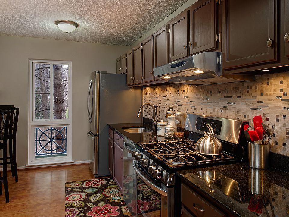 OPEN SUNDAY 1-3 GORGEOUS KITCHEN! Completely remodeled with SS appliances, granite counters, granite breakfast bar... the works! Updates include floors, HVAC, updated bath, beautiful tiling. Spacious two bedroom home on second floor. This place has it all - in the heart of Reston, close to metro and yet... Complete serenity is found on this large balcony backing to woods & a babbling brook. All this and PRICED to SELL. HURRY. Water, Sewer and Gas (to power heat & water heater) are included in HOA! You only pay electric!
