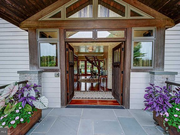 Please do not enter property without a confirmed showing appointment. Premier location, panoramic views and designer finishes are what you will find at this 24+ acre estate in the middle of Falls Road Corridor. This contemporary home features 5,600+ square feet, first floor master bedroom with gym, sitting room and designer closet. State of the art chef's kitchen, 4 fireplaces, and a European influenced courtyard and pool. 7 outbuildings which are suitable for a party barn, elite automobile storage, art studio, potting shed, 2 run-in sheds and a carriage house. The main house overlooks exquisite landscaped grounds and large pond with stream.
