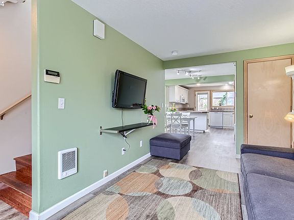 Welcome to a rare find in the real estate market a well-maintained two-story end unit townhome that stands out with its unique offerings. Situated in a four-unit complex on a quiet street, this property is a mere half-block away from the Raymond City Park. Notably, there's NO HOA, distinguishing this townhome from others in its price range. With two bedrooms, 1.1 baths, and a rare 2-car deep tandem garage with high ceilings, this residence is an ideal choice for a first-time buyer or an investor seeking a low-maintenance property. The main level, featuring new LVT laminate flooring in 2022, enhances both aesthetics and durability. The kitchen, strategically positioned at the rear, overlooks the dining and living areas, offering a pleasant view of the south-facing back deck and yard. Step outside onto the deck, which overlooks a spacious yard shared by all residents (or easily fence off your portion), creating a simple yet enjoyable outdoor space. The property also has a newer roof installed in 2018, instilling confidence for the new homeowners.This turnkey home is crafted for practical living, making it an excellent choice for those seeking a hassle-free residence with the added bonus of NO HOA costs. Close to groceries, coffee, schools, parks...1 mile to Leach Botanical Gardens, 3 miles to Powell Butte Nature Park. 14 min drive to PDX. 20 min to downtown. Ask a realtor about the $15k Home Start Grant.