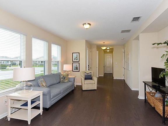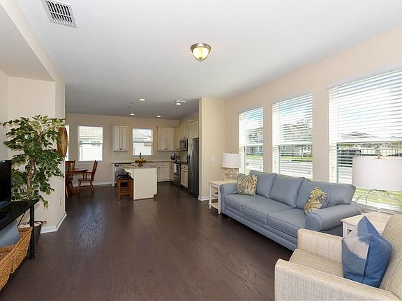 Beautiful and bright first floor townhouse in Lakewood Ranch's Harmony. No Stairs at all in this one. The two bedroom two bath townhouse with a two car garage and screened lanai is an end unit on a corner lot so it feels more like a single family home with lots of space between the unit and the street. This allows plenty of sunlight inside to see the beautiful wood flooring, and it makes it feel bright and airy. The kitchen is gorgeous with wood cabinets, granite and stainless appliances, and overlooks the dining area as well as the family room. The master suite is very spacious and has a walk-in closet and trey ceiling. The master bath has double sinks, granite and large shower with frameless glass. The community is right in the heart of Lakewood Ranch and has a great community pool with fitness. Quick access to I-75 and all the area has to offer. (Golf, beach, schools, shopping and restaurants.)
