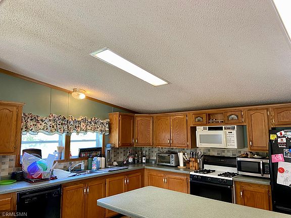 Manufactured home on 9 acres just West of Wrenshall offering 3 bedrooms and 3 baths. Open concept kitchen, dining and living area with wood fireplace. Oversized heated garage with a sauna! Metal roofs on both the home and garage. Nice private yard overlooking the land to the Southwest. Some updates such as paint and flooring are needed, however this would allow you to put your own touches on the home. This is affordable opportunity in a great area..