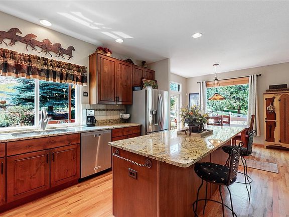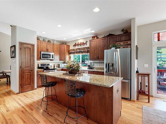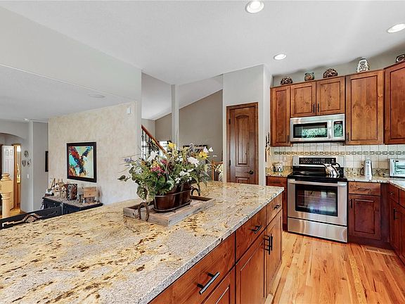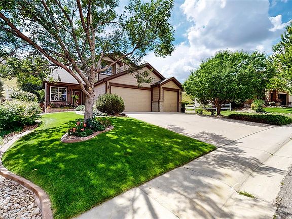 A private oasis, open space and green belt, this incredible 2 story home offers 3,553 total square feet of living w/ 4 beds, 3.5 baths, 3 car garage, finished basement and a backyard getaway. The curb appeal of this freshly painted home encompassed by lush trees and blooming flowers is the pride of ownership beckoning you to see more. Upon entering you'll be welcomed by a cozy living room, hardwood floors, new double pane low-e windows throughout, ample light, tall vaulted ceilings with a warm & charming feel. Additional features include a recently remodeled kitchen, exceptional knotty alder cabinets, amazing slab granite counters, stainless steel appliances. Includes a pantry, dining room w/ custom $2,500 stone table (included), a kitchen eating area, drop down living room. The main level also features a 1/2 bath, laundry room, utility sink, washer & dryer included. Whisk away upstairs to 2 bedrooms, a J & J full bathroom, plus a 3rd primary bedroom retreat, updated bath, granite counters, double sinks, oval tub and more. Venture to the exclusive suite and enjoy your bedroom like royalty. Want more space? Escape to the partially remodeled full basement well appointed w/ custom wet bar, granite counters, bar fridge, an entertainment area complete with couch, entertainment center and TV included, a gaming area, a full tile bathroom, a 4th guest bedroom with walk-in closet, a workshop and lots of storage area. Extras include a fully covered crawl space with vapor barrier and extra insulation, newer 50 yr roof, new 50 gal water heater, humidifier. Explore the great outdoors w/ peace of mind & wander to the newly stained back deck, pergola, in-ground hot tub, encompassed by the most tranquil natural sanctuary around. Including stamped & stained concrete walkway, stamped concrete edging, forever green artificial turf, a variety of flowers, perennials, evergreens, deciduous trees. This is the perfect Colorado home. Must see! Schedule a showing today!