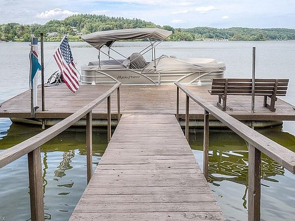 Fantastic Year round lake home with complete privacy on a dead end street. Easily one of the top 5 homes on Atwood Lake. 4,512 sq. ft. with 5 BD- 5 BA. First flr FR with stone fireplace and HW floors. Beautiful quality kitchen with newer stainless steel appliances. First floor laundry. Some newer windows. 3 bedrooms on the 1st Flr with 2 Baths /optional first floor master with beautifully tiled shower. 2nd floor master suite with granite in bath, sitting area, double closets- over $40,000 invested! Additional living suite with cherry planking with self-contained aprt. 2 BD lrg.LR, laundry area and separate entrance 2nd kitchen ideal for parents, in-laws, guests or older children. Beautiful cement steps going down to the water and dock. Fabulous landscaped yard with courtyard entertainment center - partially fenced ideal for pets. 2 ½ car garage. Updates in August 2017: $11,000 in new windows, $13,000 in exterior staining /painting & $12,000 in new shingles. One of the most picturesque settings at Atwood Lake with total privacy.