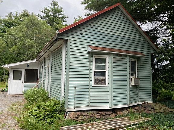 Surprises abound in this creative, rustic hideaway occupied by an artist, cabinet maker, woodcarver for more than a quarter of a century. This 1 bedroom, 1 full bath, 980 square foot home contains a studio workspace could easily be transformed into the original 2 bedroom or craft room, exercise space, or whatever your creativity desires. Loft ceiling in the living room and an open kitchen provide a surprisingly spacious feel. Built-in cupboards match the living room wainscoting. Nestled in 7.75 acres of quiet countryside, massive trees surround stone edged perennial gardens, and a pond deep enough to support fish year-round. A fire pit overlooks the extensive meadow behind the house. Perfect for a single person looking to downsize, or a young couple starting out. Some exterior work is needed, but materials have been left for finishing. Seller is Selling in As-Is Condition