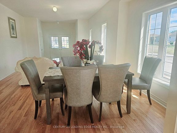 Welcome to this pristine, never-before-occupied premium corner house, masterfully constructed by the Conservatory Group and showcasing the sophisticated Glasgow model in the coveted Eastdale neighborhood. This stunning full brick home exemplifies unmatched quality and artistry. Enter through the double doors into a spacious and welcoming living and dining area adorned with luxurious hardwood flooring throughout the main level. The expansive family room, featuring a charming fireplace, is perfect for both entertaining and unwinding. The superb kitchen boasts upgraded appliances, quartz countertops, and a stylish backsplash, ideal for culinary enthusiasts. The second level offers four generously proportioned bedrooms, three full bathrooms, a cathedral ceiling, and a conveniently placed laundry room. The fully finished basement includes a versatile recreation room and an additional full bathroom.