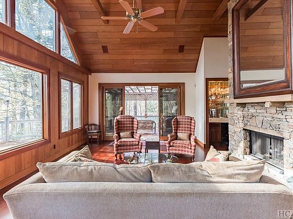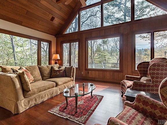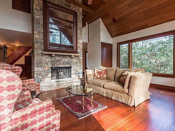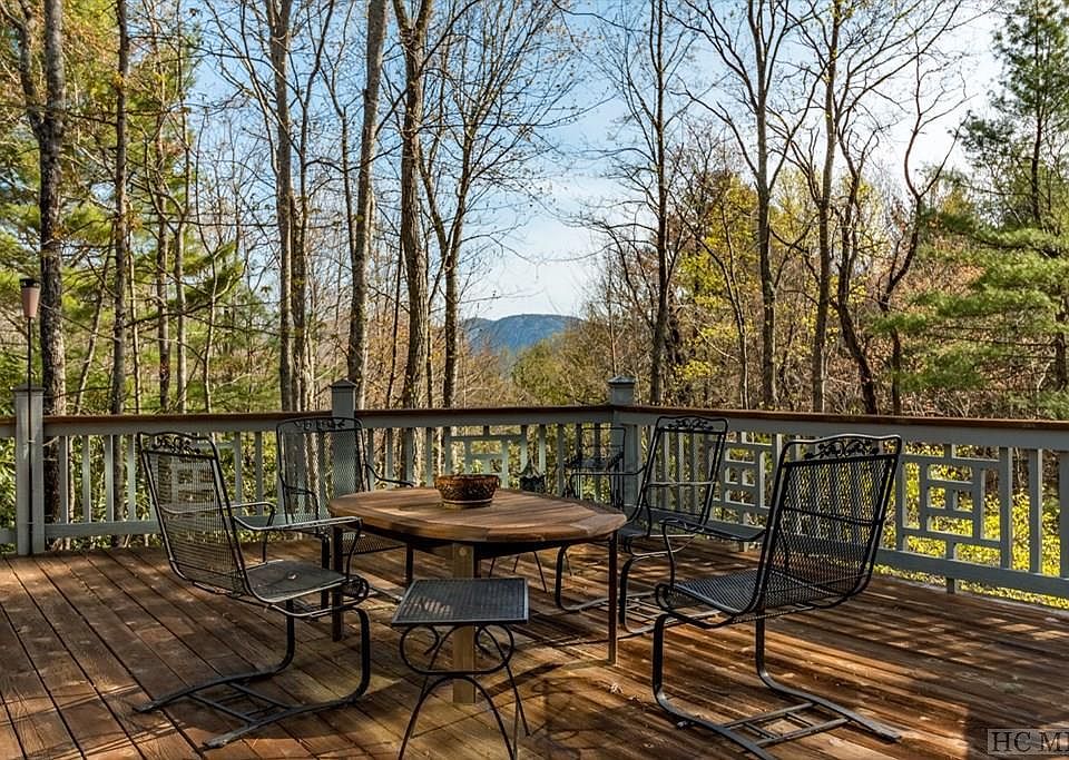 Custom Cedar Hill 3 bedroom, 3 1/2 bath home on +/-2.83 acres just minutes to Cashiers and Sapphire Valley with paved roads and gated access! Level entry home with Brazilian cherry wood floors and gas double-sided stone fireplace opening to the dining and living rooms, the large windows display the view of Laurel Knob Mountain and large deck. The master suite is on the main level and has a walk-in closet, with private entrance to side deck. Many built-ins! The eat-in kitchen also has marble counter tops, marble island and a gas log faux fireplace, with nearby laundry room and walk-in pantry. Living room and upper level have vaulted ceilings, upper level with two bedrooms and two baths separated by a den and eat-in coffee bar, including granite countertop, dishwasher, sink, and 1/2 fridge.Lots of storage. Outside are two water features: one lighted multilayered recirculating water in the backyard, and one a fountain outside te eat-in kitchen window. Lovely dogwoods, rhododendrons,mountain laurel, and hardwood trees. Pergola.Practically across the street from Cedar Creek Racquet Club. Onlyfive minutes from the grocery store, coffee shop, dining, and shopping.