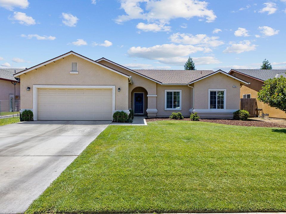 Discover this wonderful home nestled in the charming city of Dinuba! Perfectly situated near schools, parks, and convenient shopping amenities, this location is truly ideal. From the moment you arrive, you'll be warmly greeted by the inviting curb appeal of this meticulously cared-for home. Step inside to find the beautiful new luxury vinyl flooring throughout, paired with plush new carpeting in the bedrooms. The open-concept living area flows seamlessly into the kitchen, allowing natural light to flood the space, creating a bright and welcoming atmosphere. The pristine interiors are sure to impress a variety of prospective buyers. Each bedroom is bright and spacious, with the master suite offering a walk-in closet and his-and-hers sinks for added convenience. Enjoy the added convenience of indoor laundry and ample storage throughout the home. Make your way to the large backyard, perfect for outdoor activities, gardening, and entertaining. With plenty of space, you can customize it to suit your needs and lifestyle. This property is move-in ready. Don't miss out on this incredible opportunity to own a piece of Dinuba's charm. Come and see your new home today!