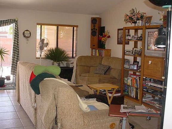 Largest single family plan in serene Sunset Greens. Open living area includes living room, family room, formal dining, kitchen, breakfast nook & breakfast bar. Kitchen has plenty of cabinet space + 2 pantries & includes new range/oven & microwave. Spacious master bedroom with a huge walk-in closet & linen closet. 2 extra storage closets in hall, laundry room + 2 linen closets. 17" tile, high-end carpet, pad & 2" wood blinds. Solar screens on most of windows. Ceiling fans in bedrooms. Desert landscaped back yard with large covered, tiled patio. Covered patio has 2 lighted fans. 2 1/2 car garage has built in shelves with lots of storage & built in work bench. Enjoy golf privileges on Casa Blanca Golf Course and 2 pools (one heated) with hot tubs. RV parking available through the association. Several parks and walking paths throughout the community. Discounts at the Casa Blanca Resort spas, restaurants & gift shop for homeowners. GREAT ASSOCIATION! Owner/Agent. - Last updated: Thursday June 9th